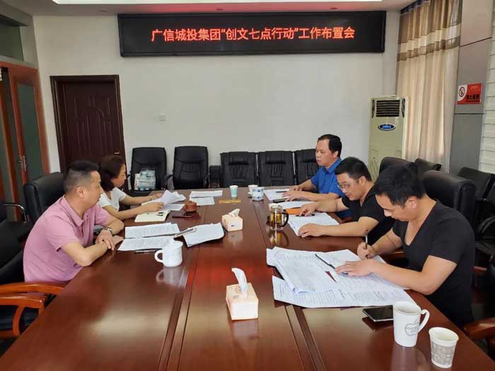 2020年6月5日下午,上饒市廣信城投集團(tuán)黨委班子在集團(tuán)二樓會(huì)議室研究部署“創(chuàng)全國文明城市,做文明有禮廣信人---大宣傳 大勸導(dǎo) 大監(jiān)督”主題活動(dòng)7點(diǎn)行動(dòng)。